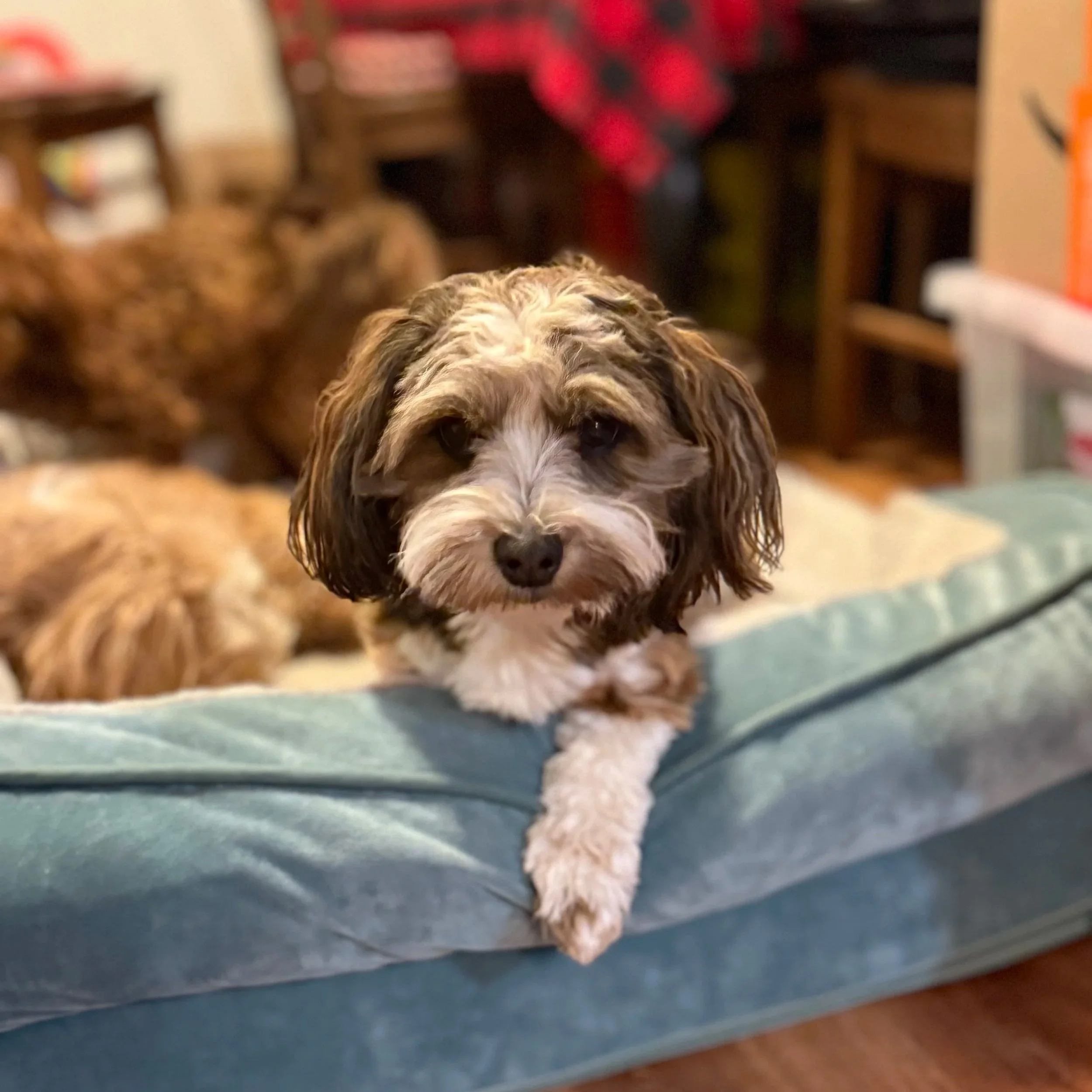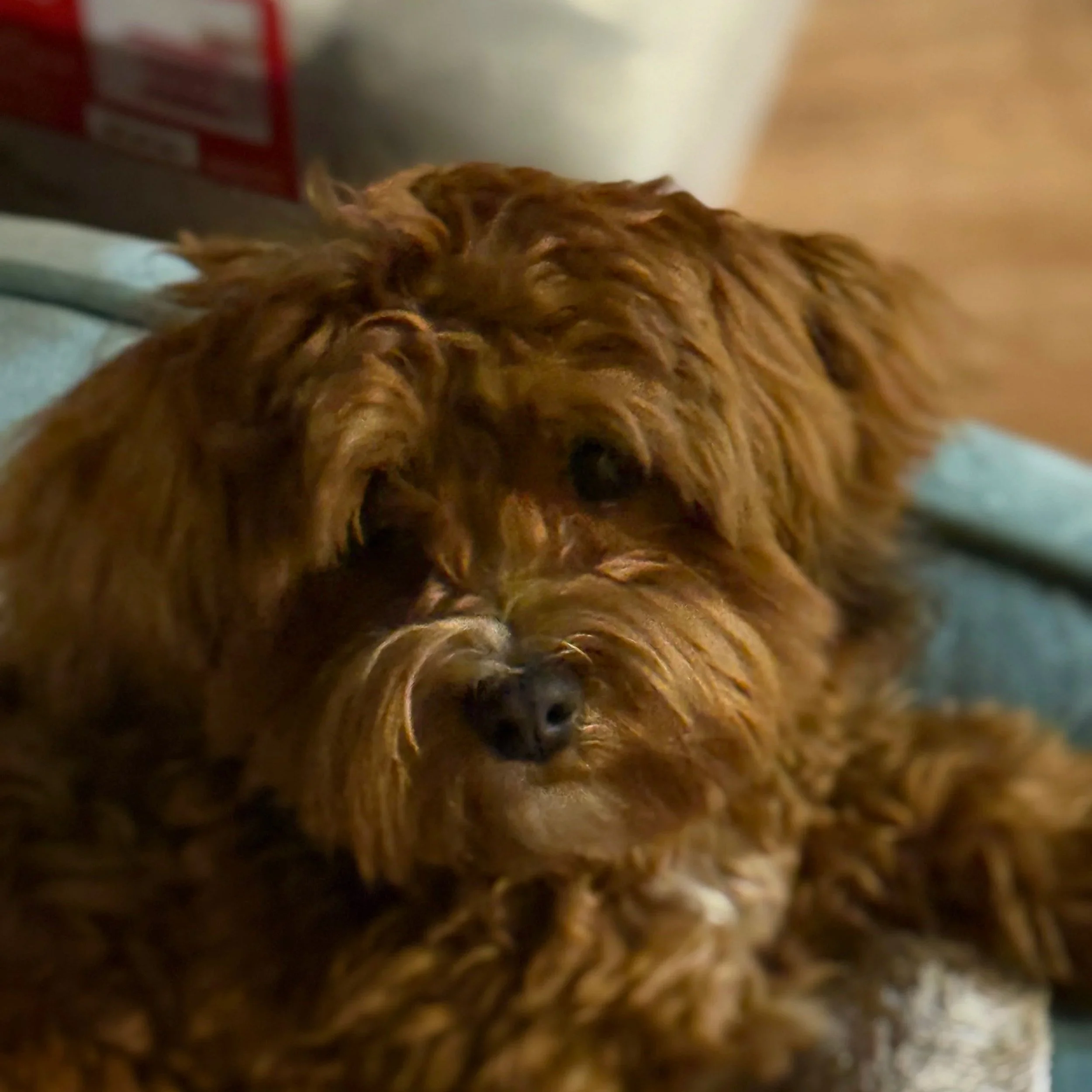Tilly is a delightful dog. She is playful, sweet and loves attention. She is very food motivated which is interesting given her petite size. Her coloring is a beautiful combination of red and cream. She looked like she had swallowed a small watermelon when she was pregnant. We were concerned that she was too little to be so pregnant. Her first and second pregnancies and deliveries were uneventful and straight-forward. We had never experienced such a straight-forward, complication-free and fast delivery process. Tilly weighs about eight pounds when she is not pregnant.